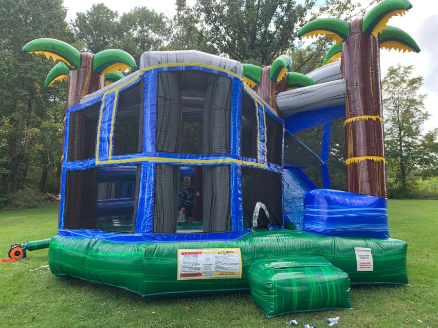 We proudly deliver the Tropical Blue Crush Bounce House Combo in Grove City, Hermitage, Butler, Slippery Rock, Meadville, New Castle, Kittanning, Pittsburgh. Our reliable service ensures that your inflatable arrives on time and is set up efficiently, allowing you to focus on enjoying the event. 🛠️⏰