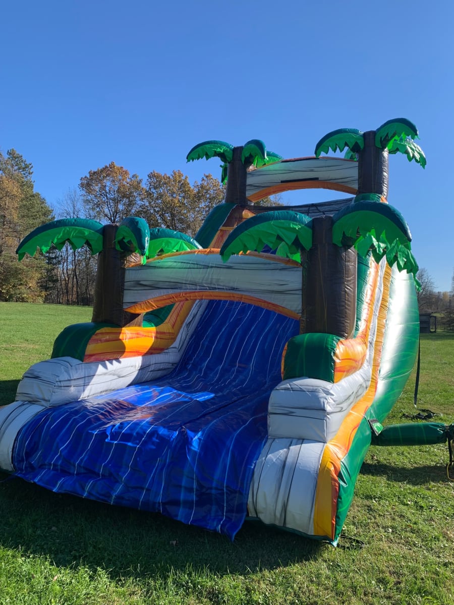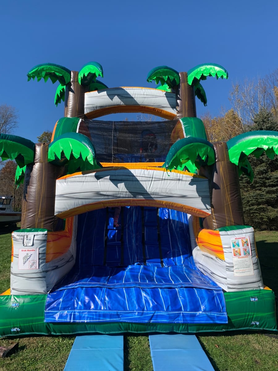 Don't miss out on the fun! Reserve the Tropical Mega Slide - 18 Foot for your upcoming event and make it an unforgettable experience for all your guests. Contact us now to check availability and make your booking. Get ready to slide into a tropical adventure filled with laughter and joy! 🌞📞